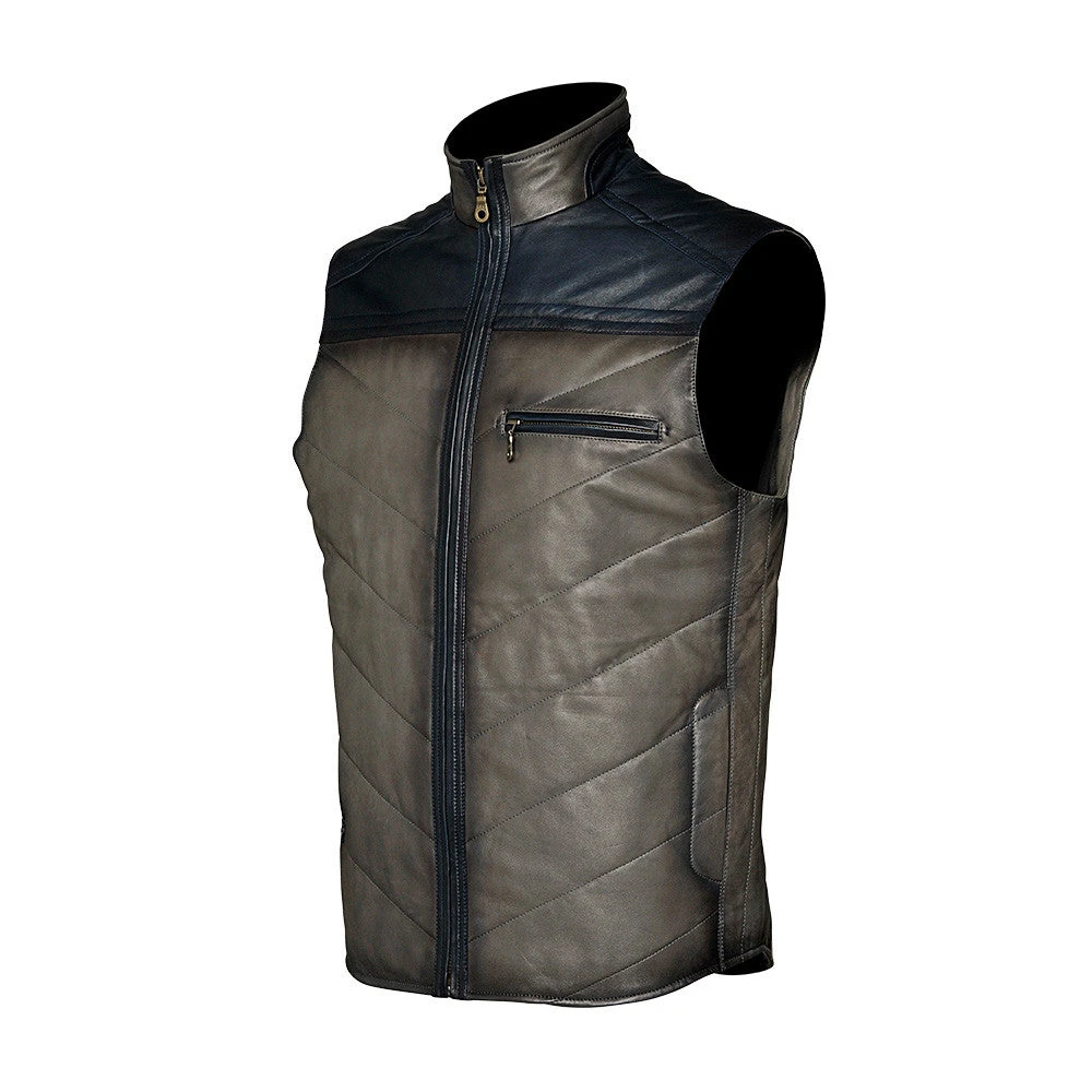 Gentleman’s vest in genuine sheepskin, upholstery combined with skin shading and contrast.