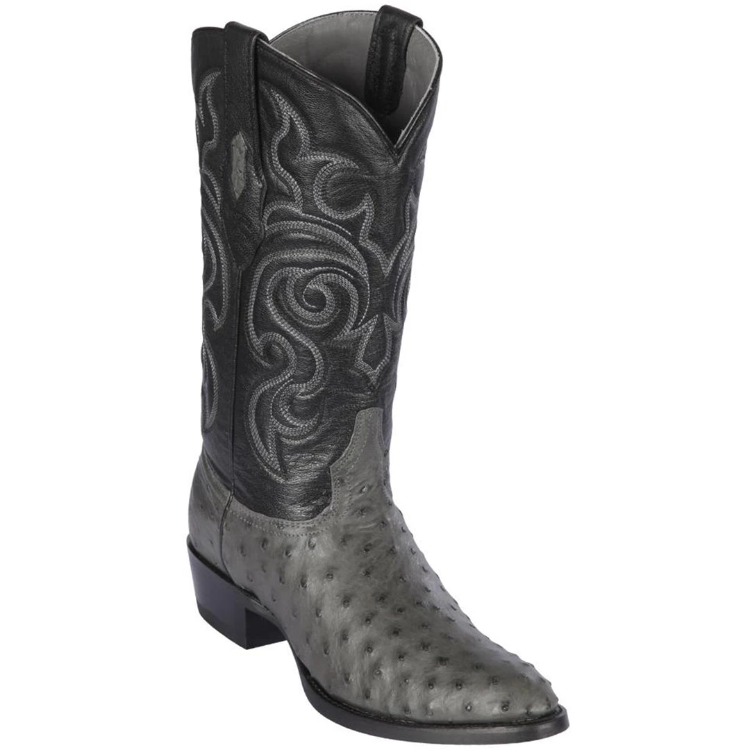 Los Altos Men’s Gray Full Quill Ostrich Round Toe Cowboy Boots.