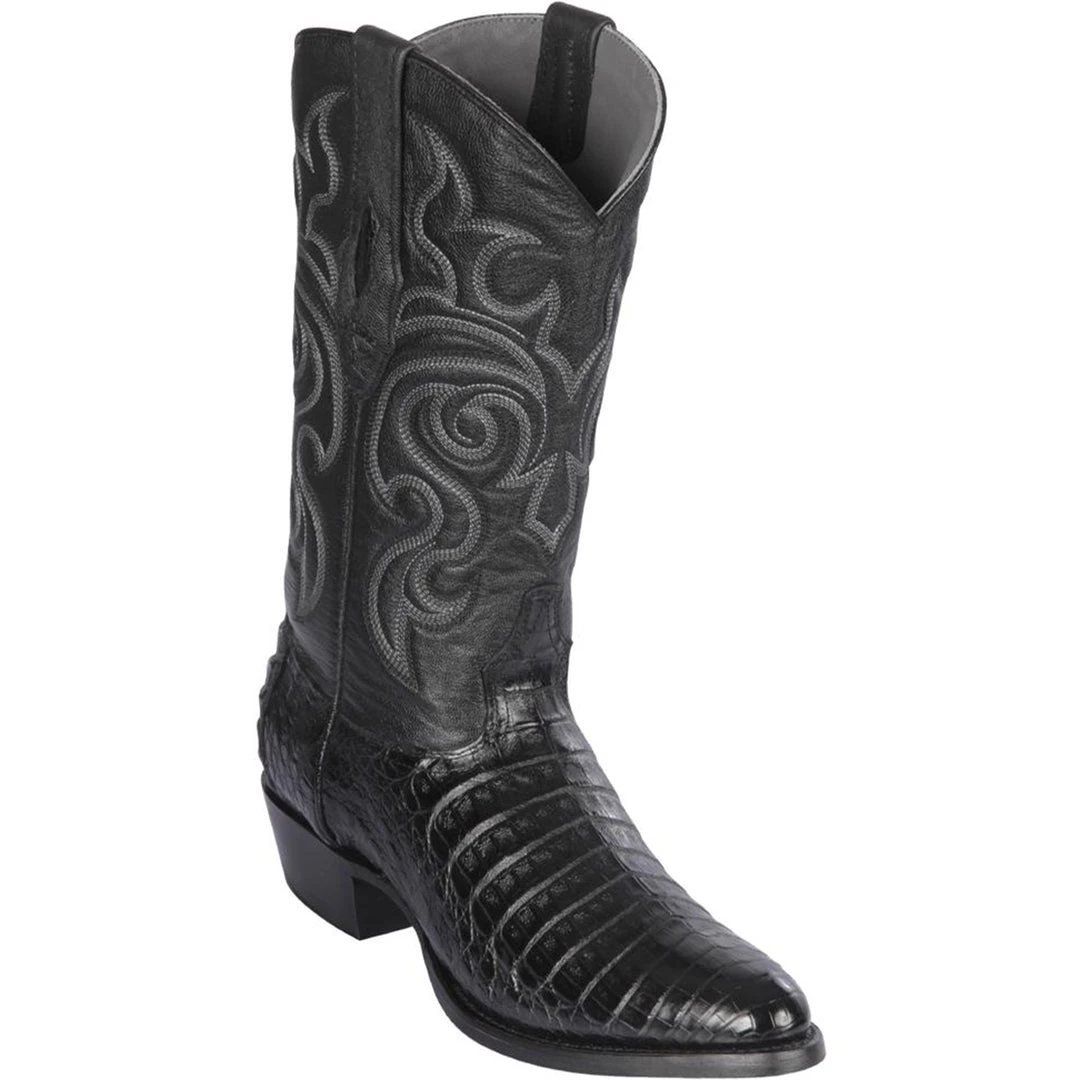Los Altos Mens Black Caiman Belly Round Toe Cowboy Boots.