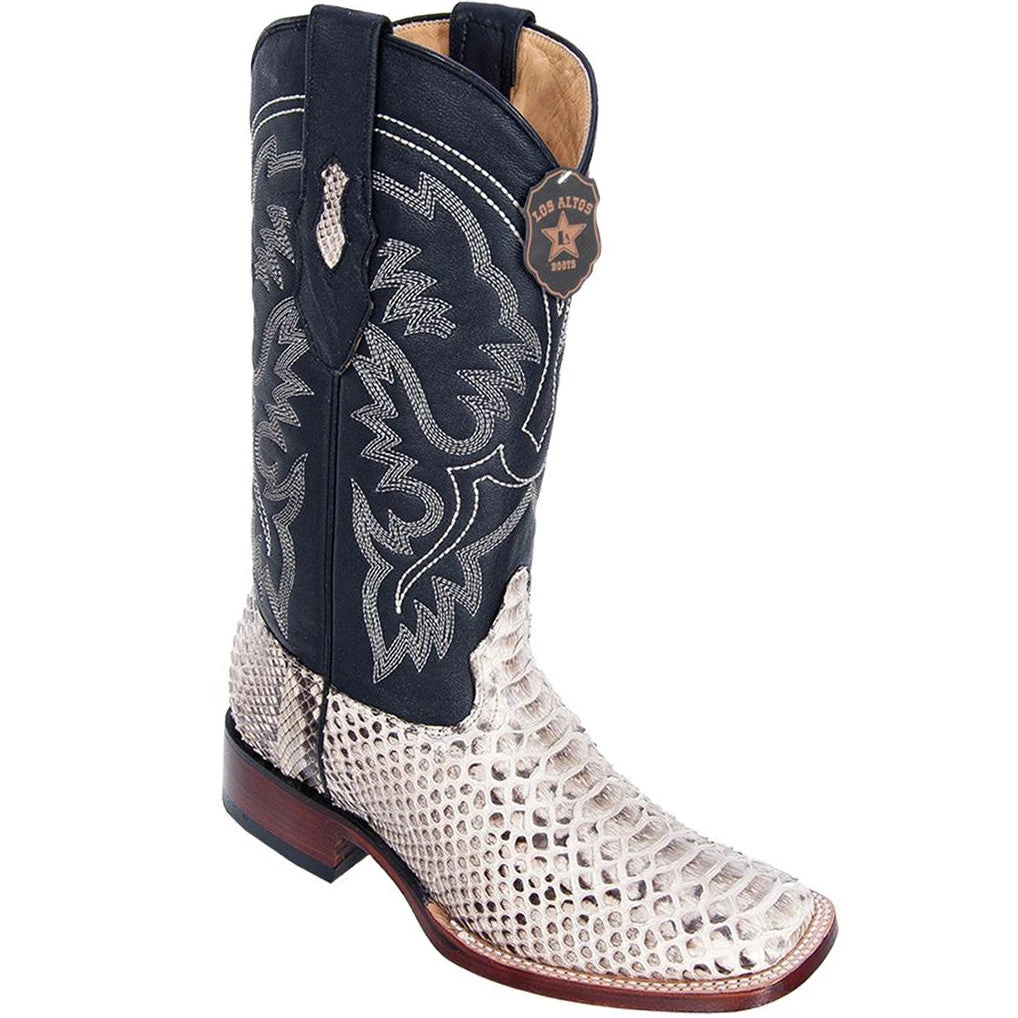 Los Altos Natural Python Snakeskin Square Toe Cowboy Boots.