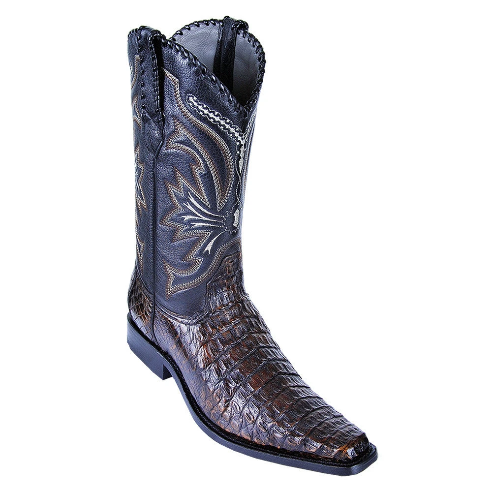 Smooth caiman boot features european square toe with a modern western styling. These boots are perfect for any occasion. Available in Black & Black/Brown.