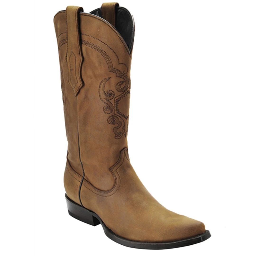 Cuadra genuine leather men’s snip toe western boots. Features stitching on upper shaft with a snip toe profile that gives these boots a classic western style.