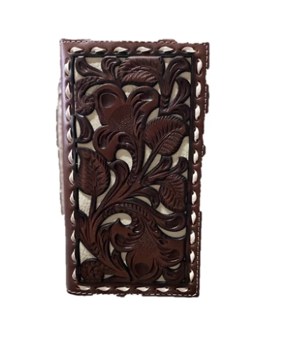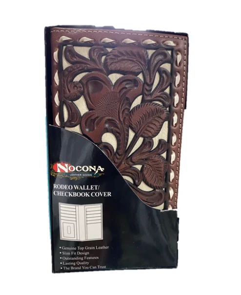 Nacona Floral Tooled Print Leather Checkbook Wallet