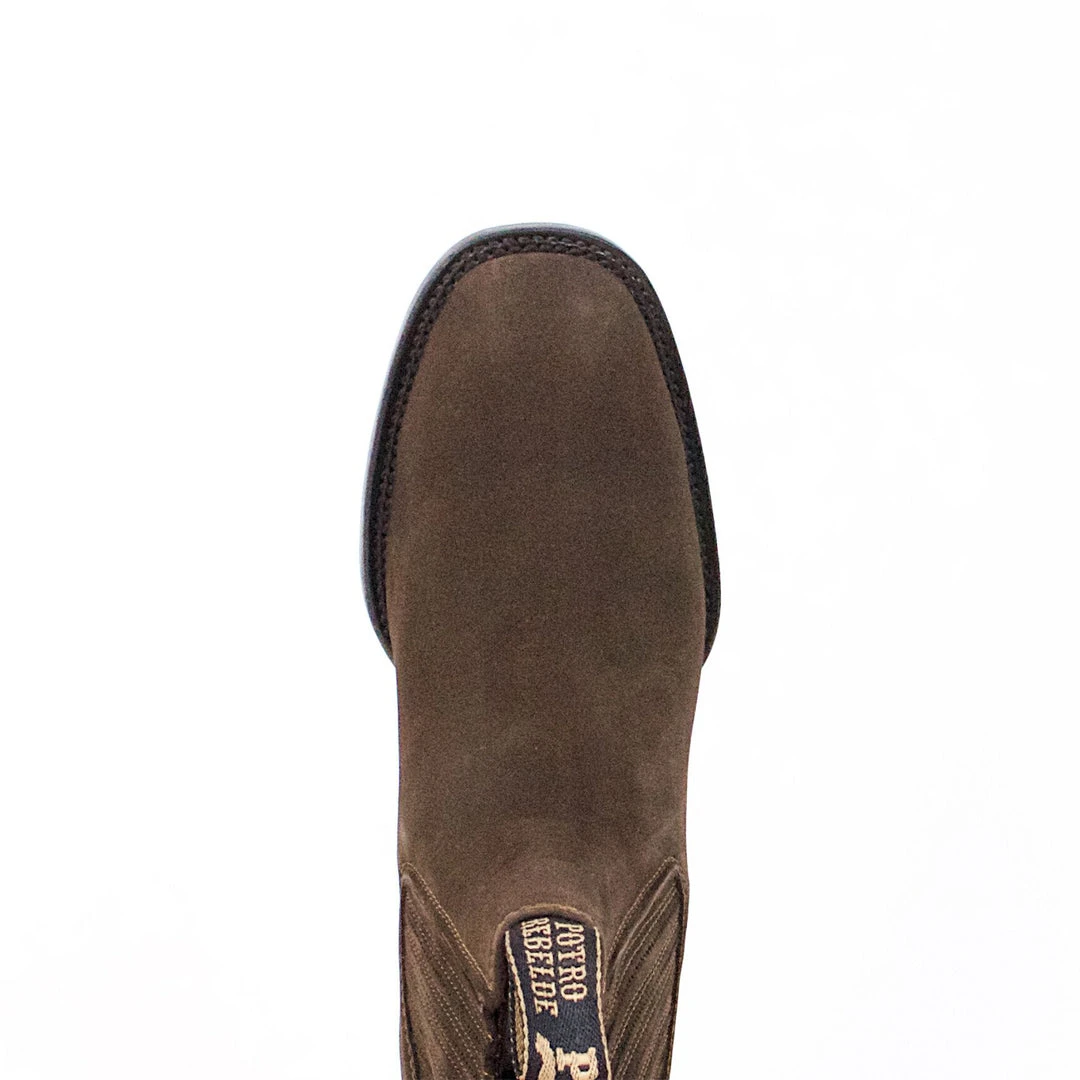 Potro Rebelde Mocha Suede Charro Square Toe Boots.