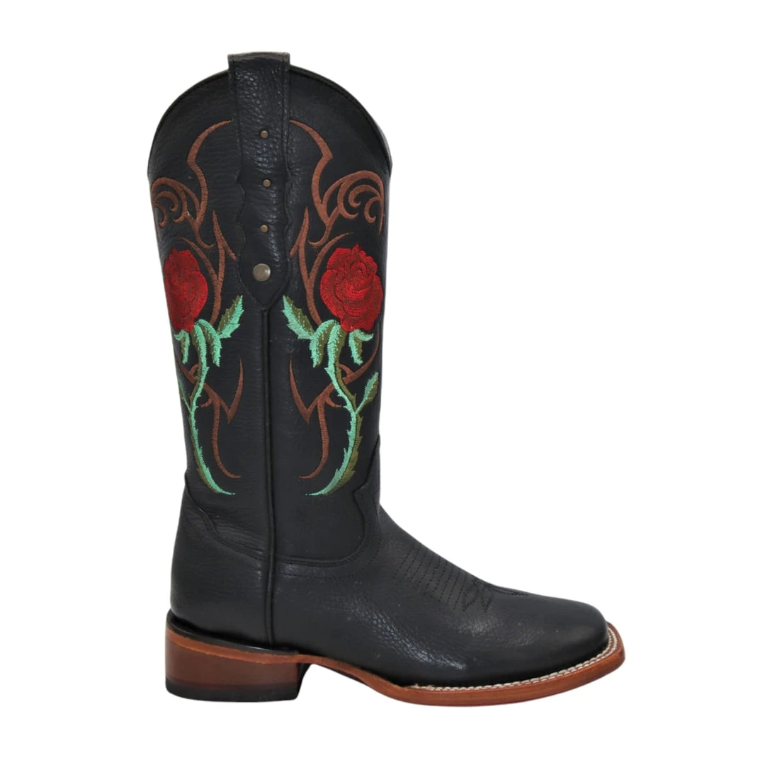 Quincy Red Rose Black Cowgirl Boots.