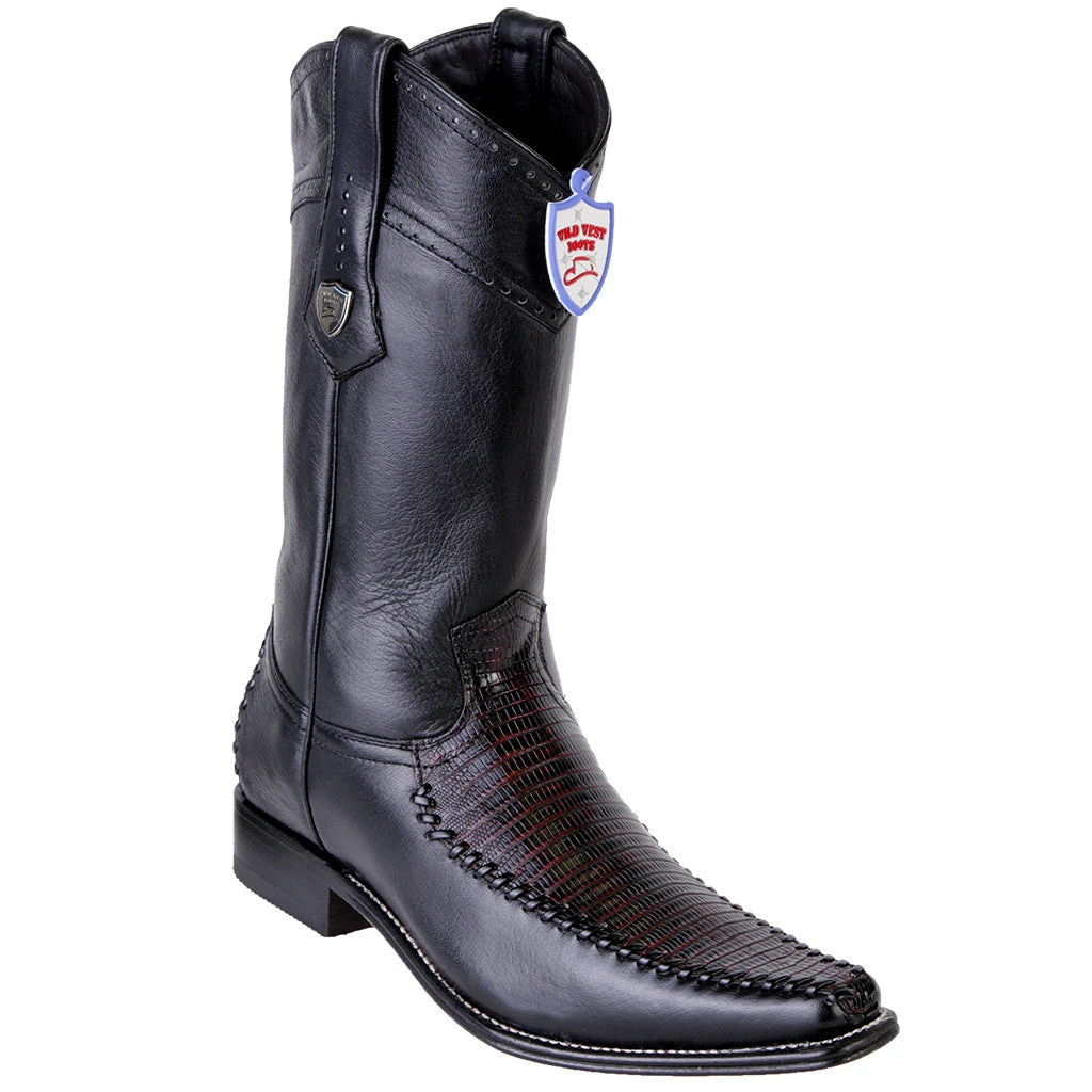 Wild West Lizard Teju European Toe Western Boots with hand stitched details on foot.